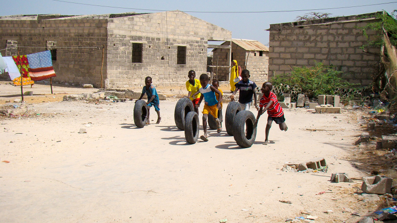 Un autre marqueur de cette pauvreté est l'absence des jeunes hommes qui sont partis vers Dakar et qui pour certains tentent la traversée vers l'Europe. Certains parmi eux sont des pêcheurs séduits par la réussite des migrants clandestins (régularisés des années après), d'autres sont de jeunes étudiants n'ayant pas réussi à s'imposer à la faculté. Pour autant, la démographie demeure vigoureuse et les enfants les plus jeunes occupent les rues et les cours des maisons, les plus âgés travaillent au ponton (photo 5) et les autres fréquentent les écoles primaires et coraniques, le collège et le lycée, construits en dehors de l'agglomération. L'insularité et l'éloignement ont ainsi renforcé la forte identité villageoise.