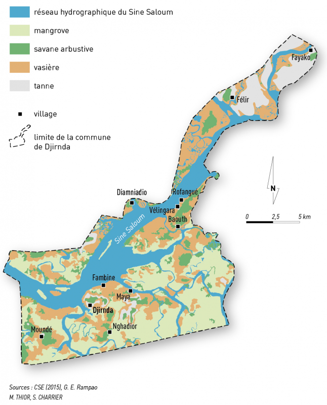 Le système de production des populations locales apparaît en pleine mutation. L'agriculture, hormis un élevage de zébus et de caprins, a quasiment disparu et ne suffit plus pour nourrir les populations locales (salinisation et diminution des terres de culture, sécheresse, pression et spéculation foncière) ; un paysage quasiment amphibien avec une forte présence de vasières à mangroves, de terre salée (fig. 2).