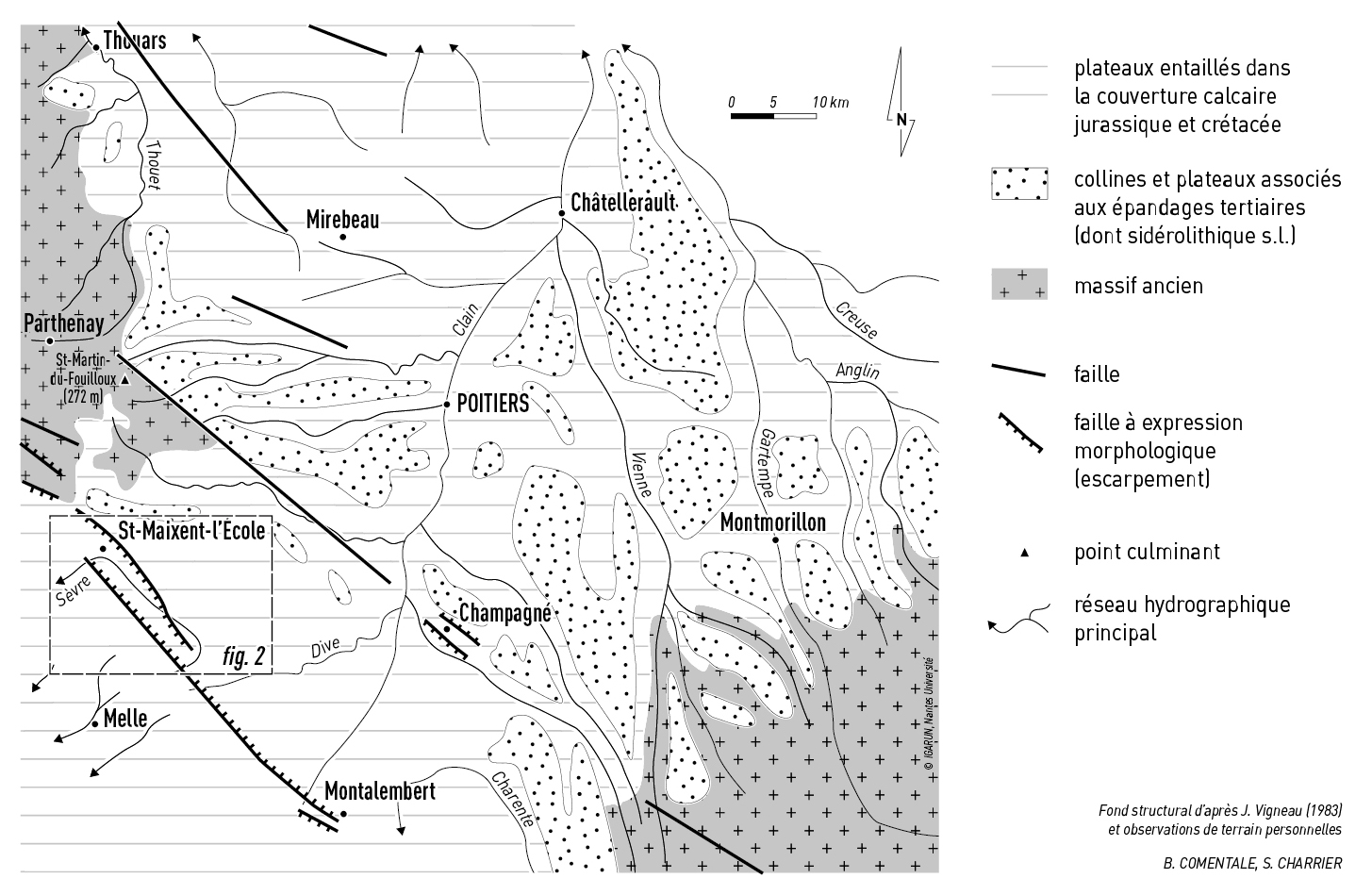 Figure 2 - Carte morphostructurale de la partie axiale du Seuil du Poitou (Saint-Maixent et alentours)