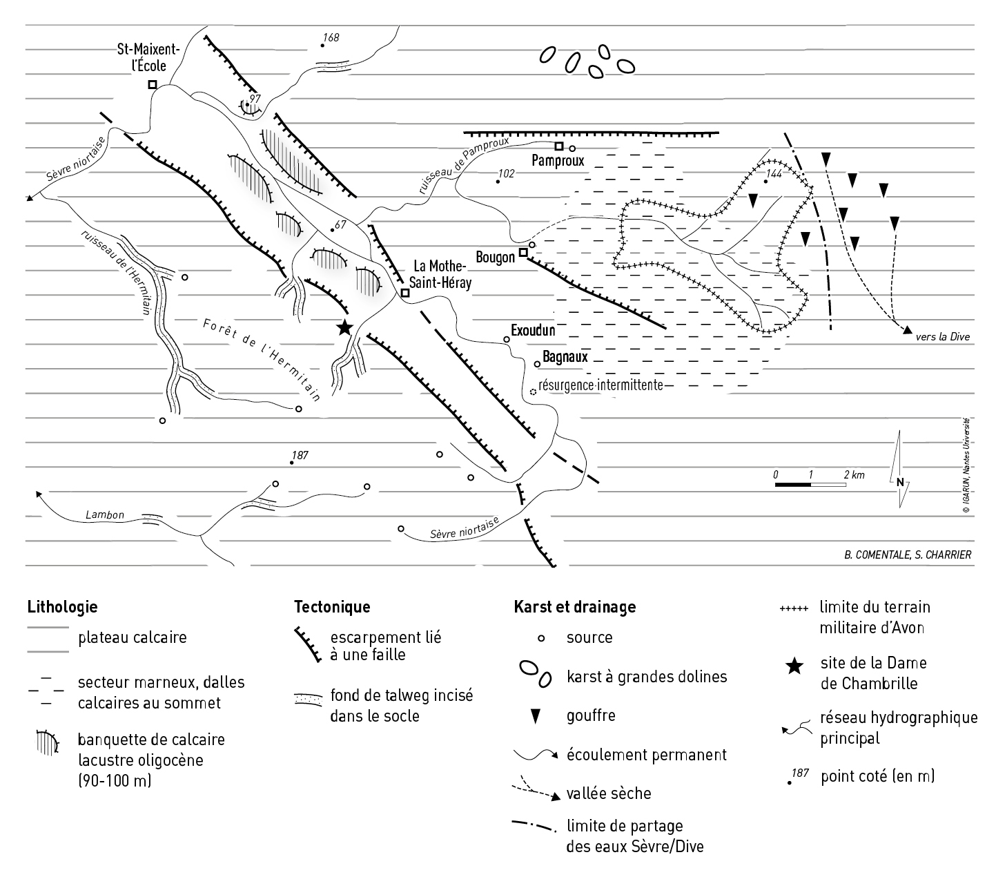 La mise en lumière du géomorphosite de la Dame de Chambrille et des conditions originales du karst d'Avon, situés respectivement à la bordure et en périphérie du fossé de Saint-Maixent-l'École, dans la partie axiale du Seuil du Poitou, apporte une pièce supplémentaire à la connaissance géomorphologique des lieux.
