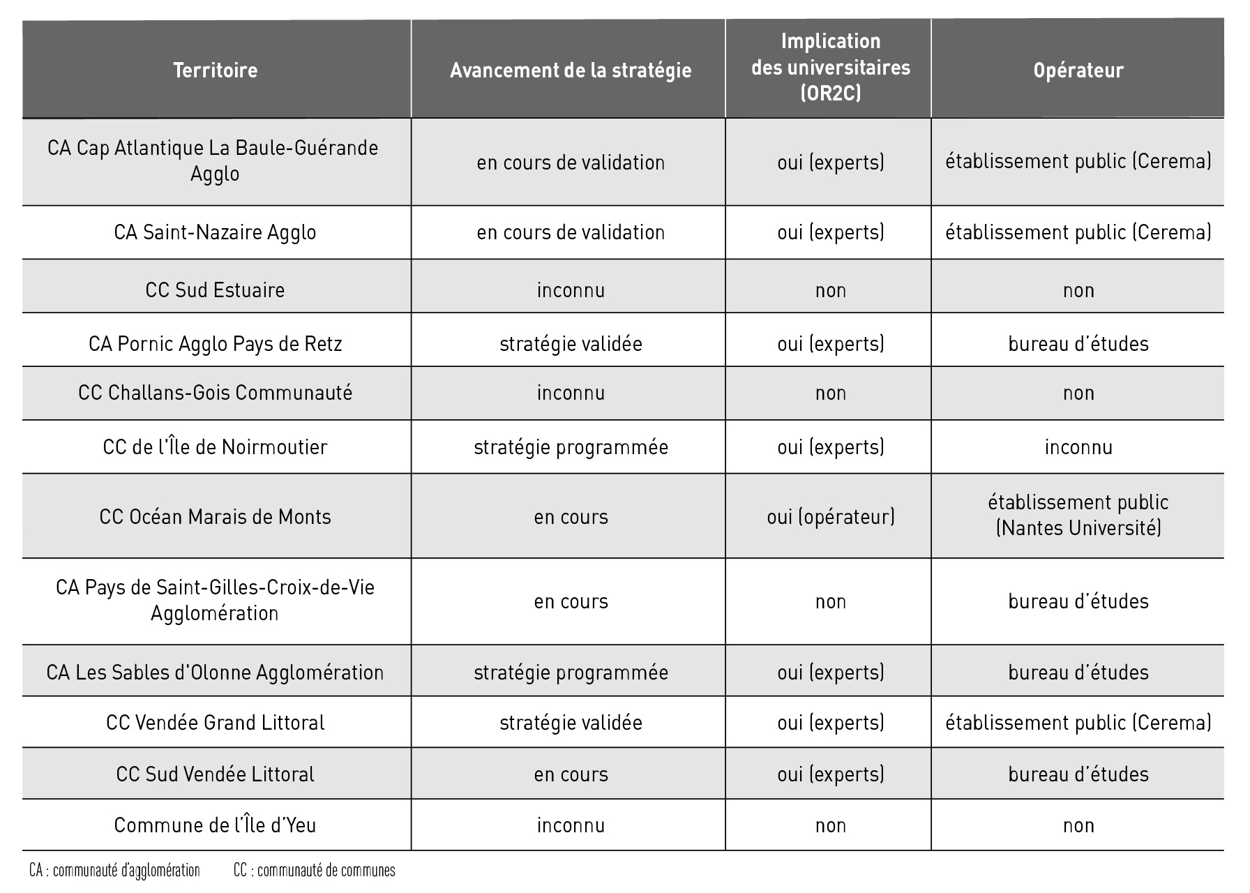 Tableau 3 - L'implication du monde académique dans les stratégies locales de gestion intégrée du trait de côte engagées par les communautés de communes des Pays de la Loire