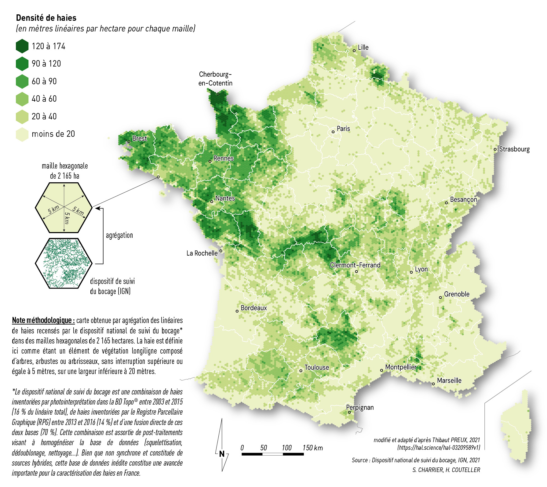 Preux T., 2021. Cartographie de la densité de haies en France métropolitaine. [URL : https://hal.science/hal-03209589v1 hal-03209589]