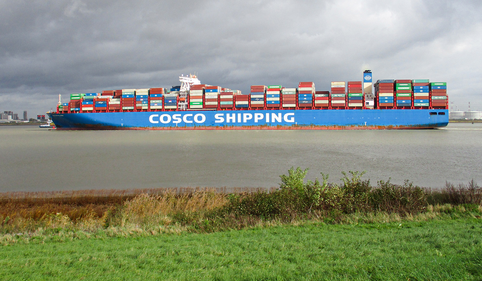 Photo 1 - Gros porte-conteneurs chinois sur l'Escaut à Anvers